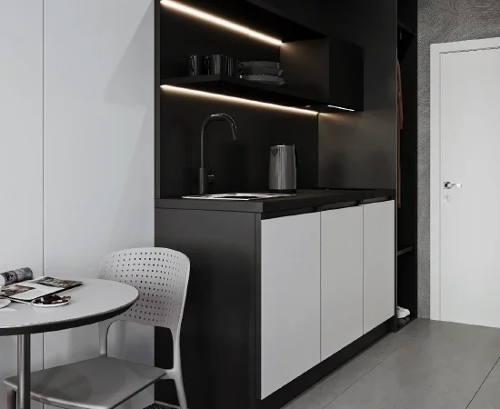 Студия с мини-кухней с двуспальной кроватью