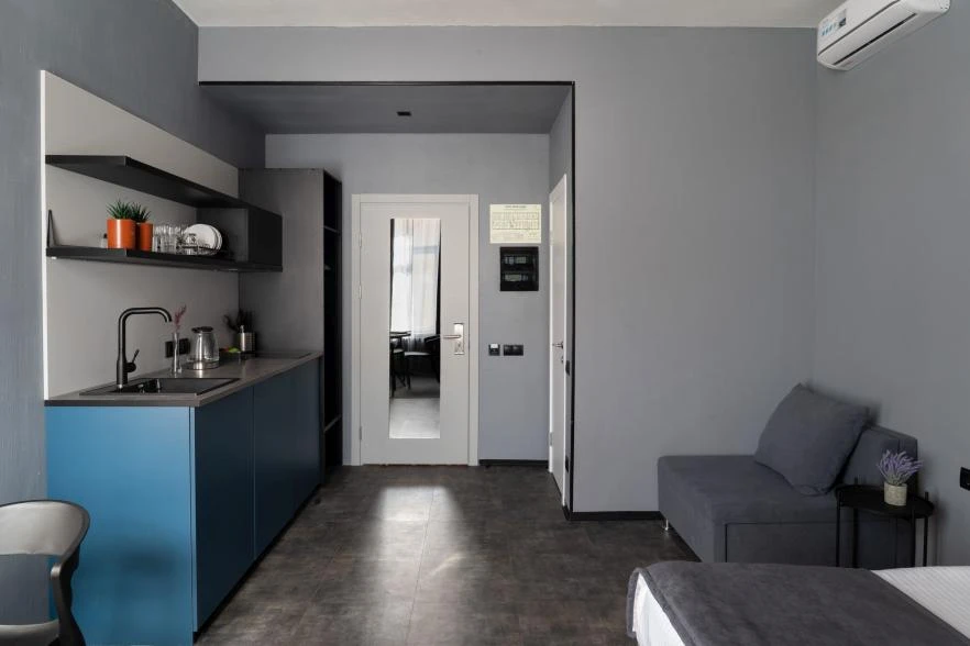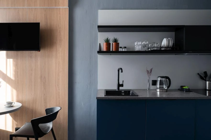 Мини кухня с кухонными принадлежностями