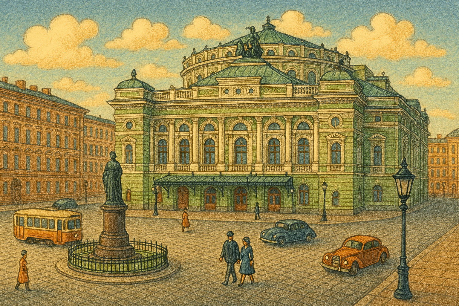 Театральная площадь, на которой находится здание, с годами превратилась в своеобразную сцену под открытым небом, где взаимодействуют архитектура, музыка, история и современность. Интересно, что сами улицы, прилегающие к театру, формируют уютное культурное пространство, вся структура которого направлена на подчеркивание значимости этого места. Мариинский театр не просто здание — это величественная мозаика из времён и стилей, где каждый элемент — от канделябра до лепнины — рассказывает свою историю.